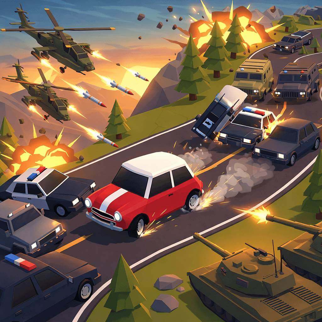 As the run progresses, police vehicles and other threats pursue aggressively. The objective is not direct combat but smart movement that causes pursuers to collide with obstacles or each other. Sharp turns, sudden direction changes, and controlled drifts allow players to manipulate enemy behavior.